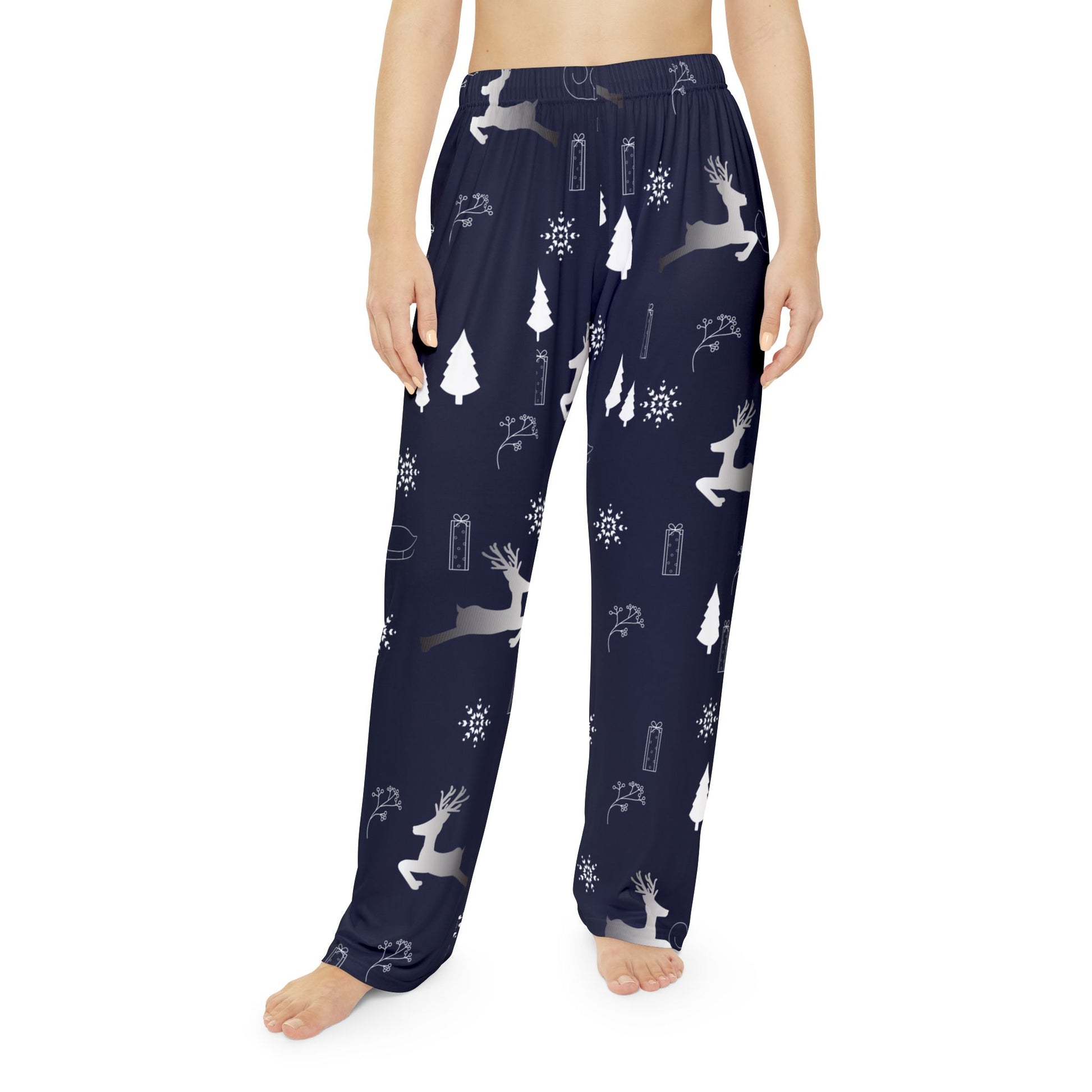 Cozy Winter Women's Pajama Pants with a festive Reindeer Pattern, perfect for holiday sleepwear and Christmas lounging. These seasonal pajama pants make a great gift idea for anyone looking for comfortable nightwear during the holidays.