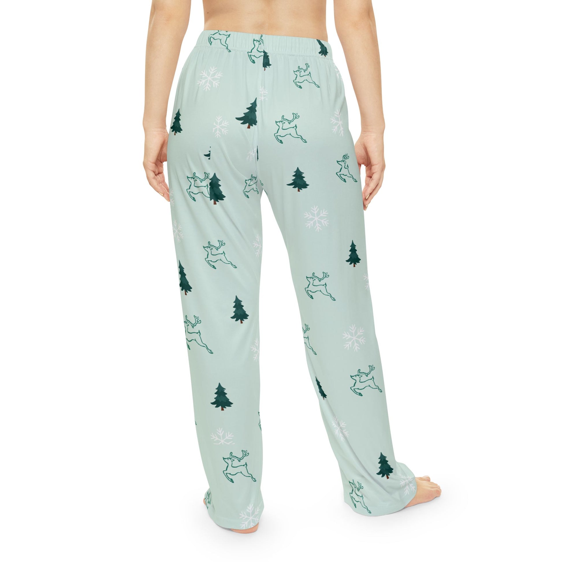 Elevate your loungewear collection with these cozy Women's Pajama Pants. Crafted from 100% brushed polyester, they offer a soft hand-feel that’s perfect for relaxing at home or enjoying a quiet evening. The playful reindeer and evergreen tree design adds a whimsical touch, making these pants a delightful choice for the holiday season. Ideal for cozy nights spent with loved ones or festive gatherings, they are perfect for winter holidays, cozy movie nights, or as a comfortable gift for friends and family. These pajama pants will wrap you in comfort and cheer, making every moment at home feel special.