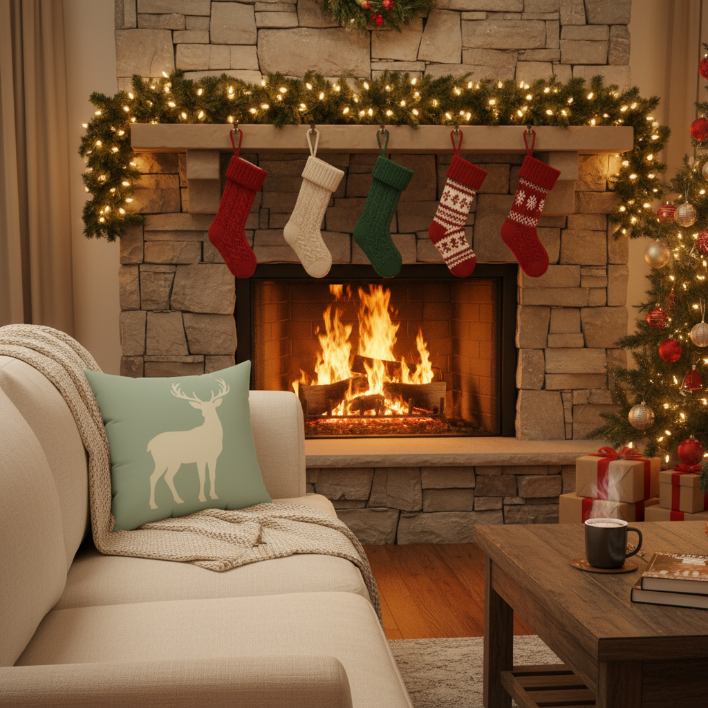 This Rustic Deer Pillow brings a cozy, cabin vibe to any living space. Perfect for nature lovers and those who enjoy rustic decor. Ideal for holiday season decorating, cabins, and cozy reading nooks.