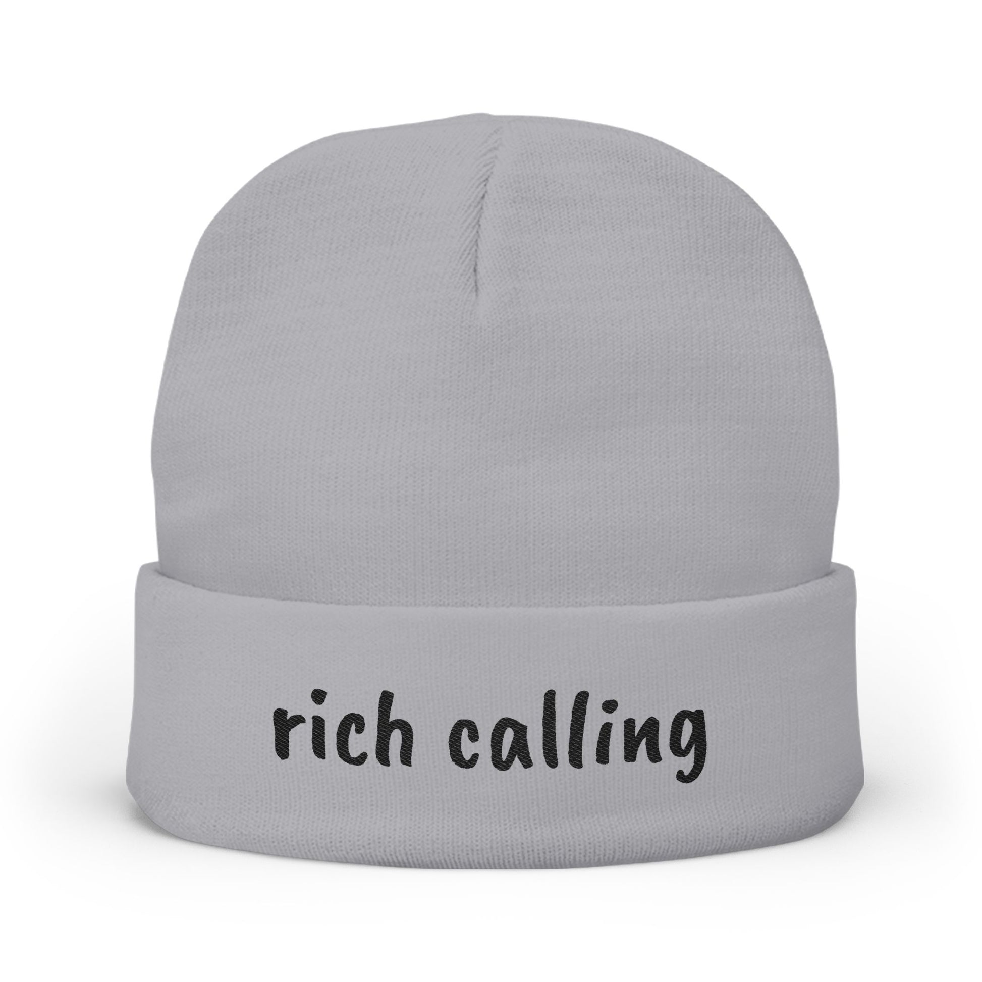 Stay cozy and stylish this winter with this breathable Knit Beanie featuring the phrase 'Rich Calling' Perfect for outdoor activities or just a casual day out, this beanie adds a touch of personality to any outfit. It's a great gift for friends or family during the holiday season or birthdays, suitable for anyone looking to express their unique style.
