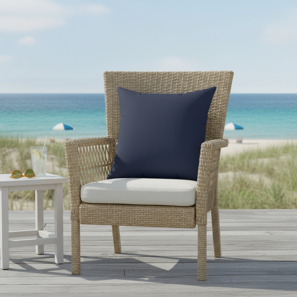 A deep navy spun polyester pillow that brings quiet, modern calm to living spaces. The double-sided print and concealed beige zipper keep the look seamless while the recycled polyester insert ships vacuum-packed to avoid creases and fluffs up 2–3 inches larger than the cover for a full, rounded finish. It sits well on a sofa, bedroom bench, or reading nook — pairing easily with warm woods, textured throws, and neutral palettes. The durable spun-poly fabric resists wrinkles and holds shape, so it looks crisp day after day.