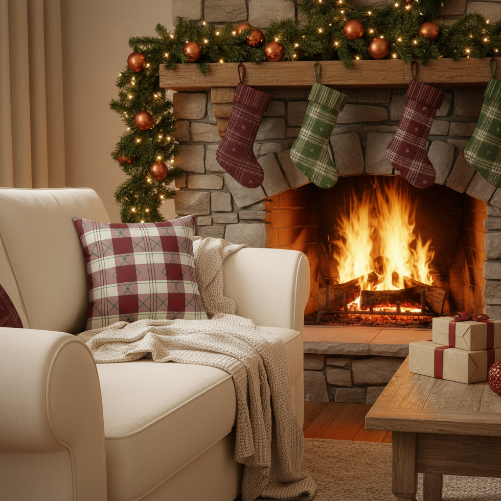 Cozy Plaid Square Pillow for Home Décor. This pillow is perfect for adding a touch of warmth and comfort to your living space. It gives off a cozy and inviting vibe, ideal for snuggling up with during the colder months. It is relevant for home decor enthusiasts and those looking to add a pop of pattern to their space. Perfect for the holiday season and cozy nights in.