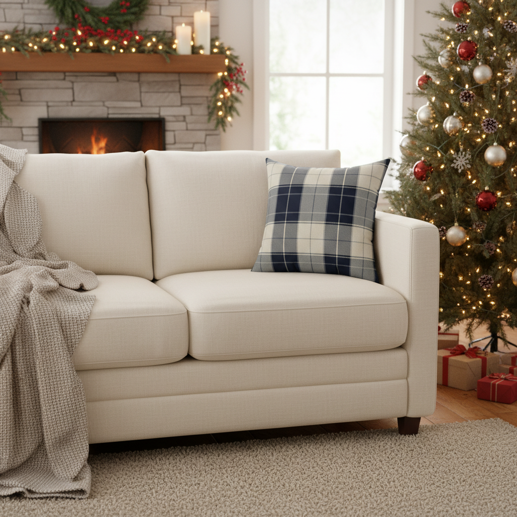 Classic Buffalo Check Decor Navy & Cream Plaid Square Throw Pillow, perfect for adding a cozy and timeless touch to your living space. Ideal for those who love rustic or farmhouse-style decor. Great for Christmas, Thanksgiving, and everyday home decor.