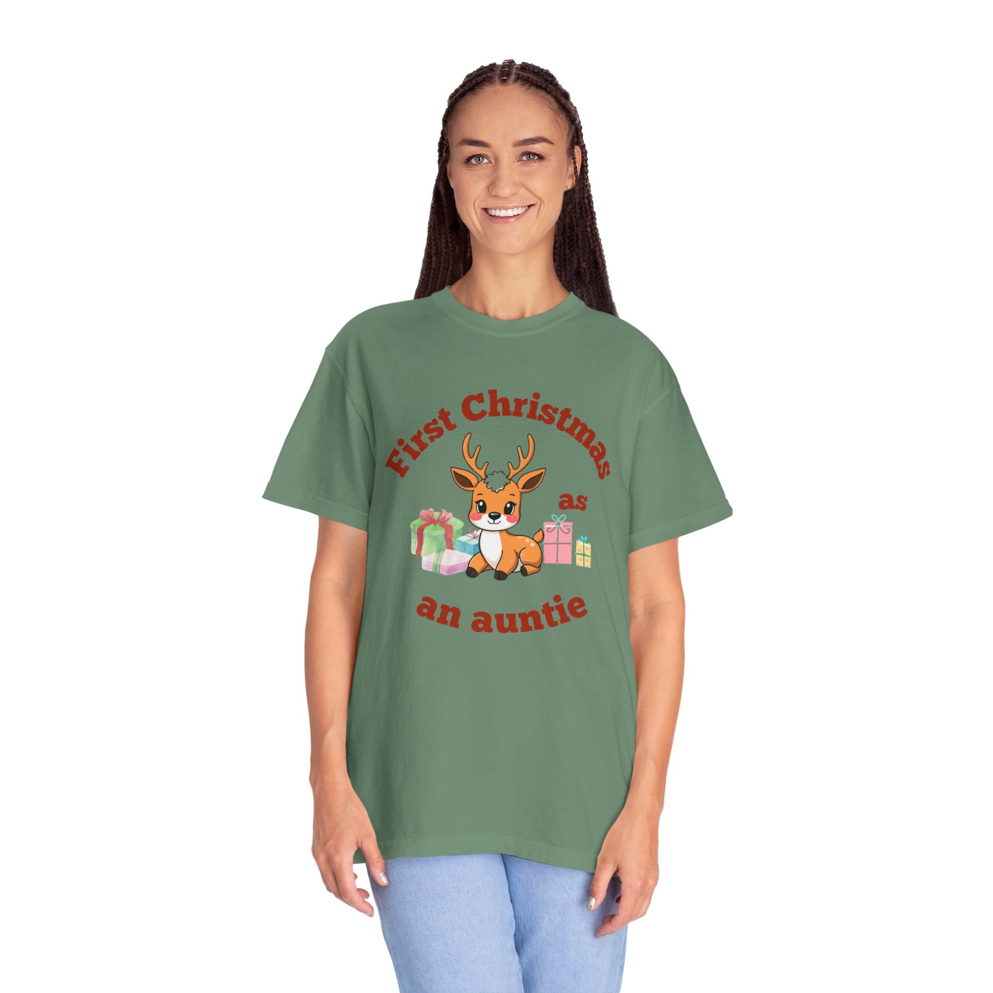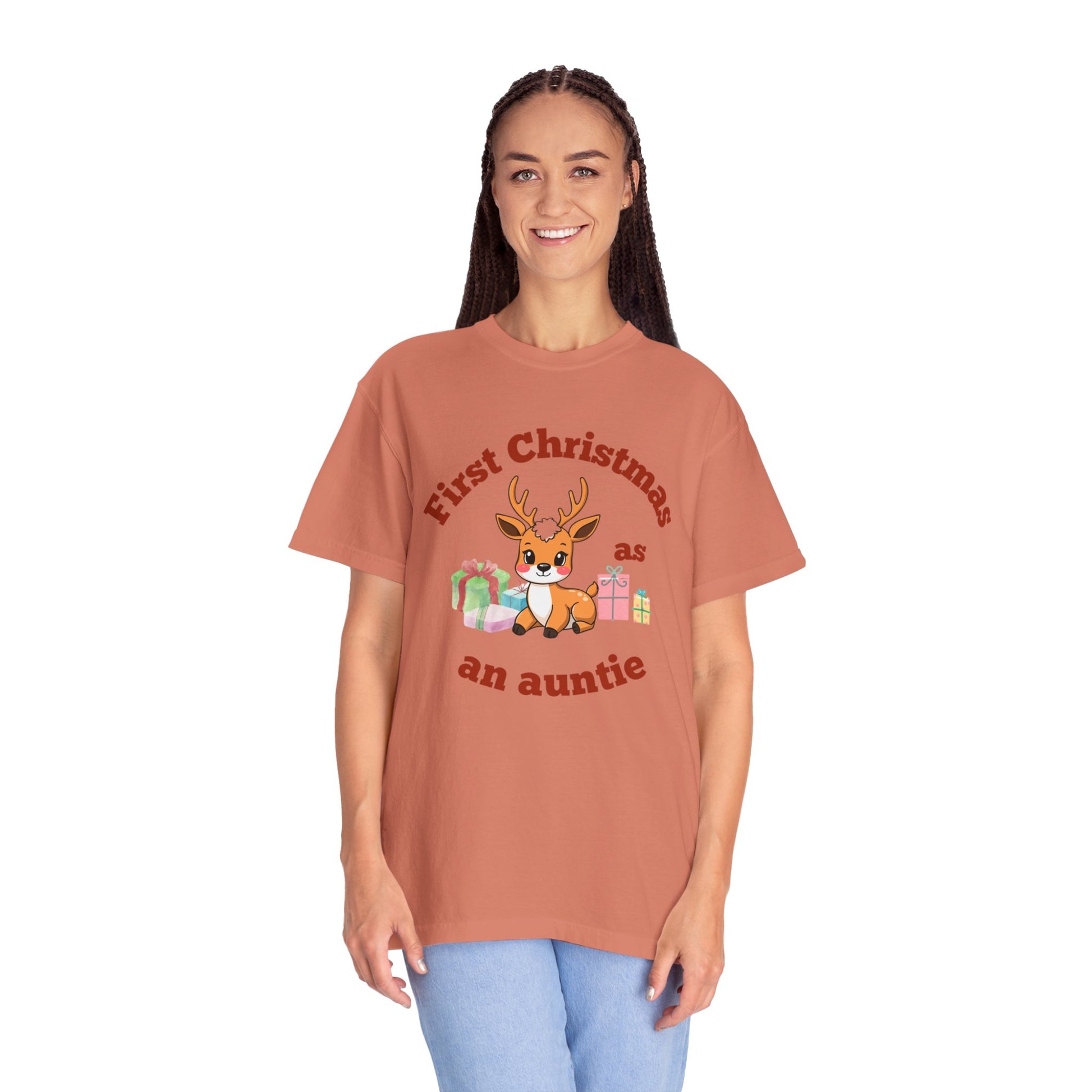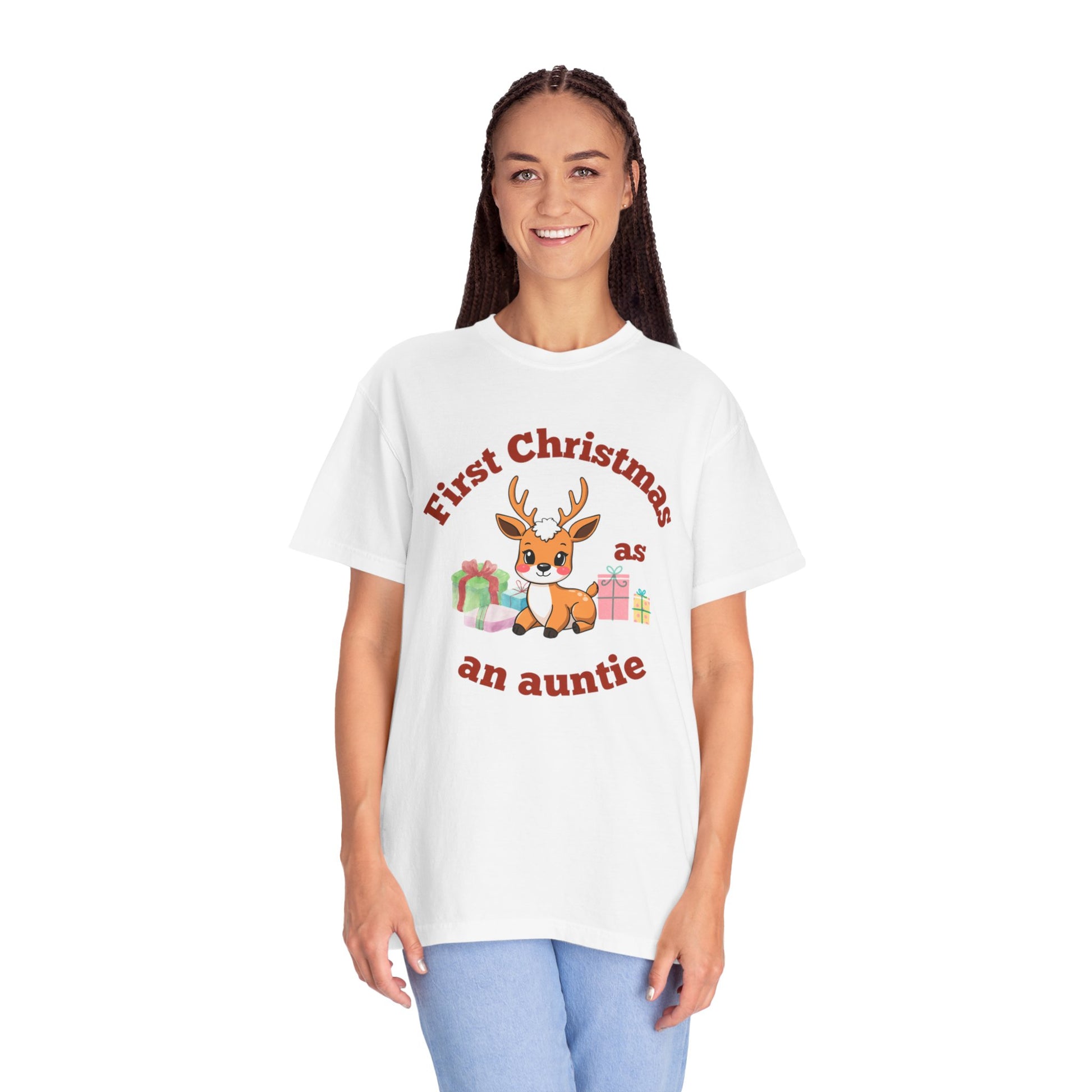 Unisex Christmas Auntie T-shirt - Cute Reindeer Design for New Aunts
